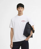 Barbour 1976 Graphic Oversized T-Shirt hylder brandets ikoniske arv med et strejf af nostalgi. Lavet i 100% bomuld med afslappet oversized fit og bred ribkrave. Diskret Barbour-logo på brystet, mens ryggen bærer et markant arkivprint fra 1976 – et statement-piece til den moderne garderobe.