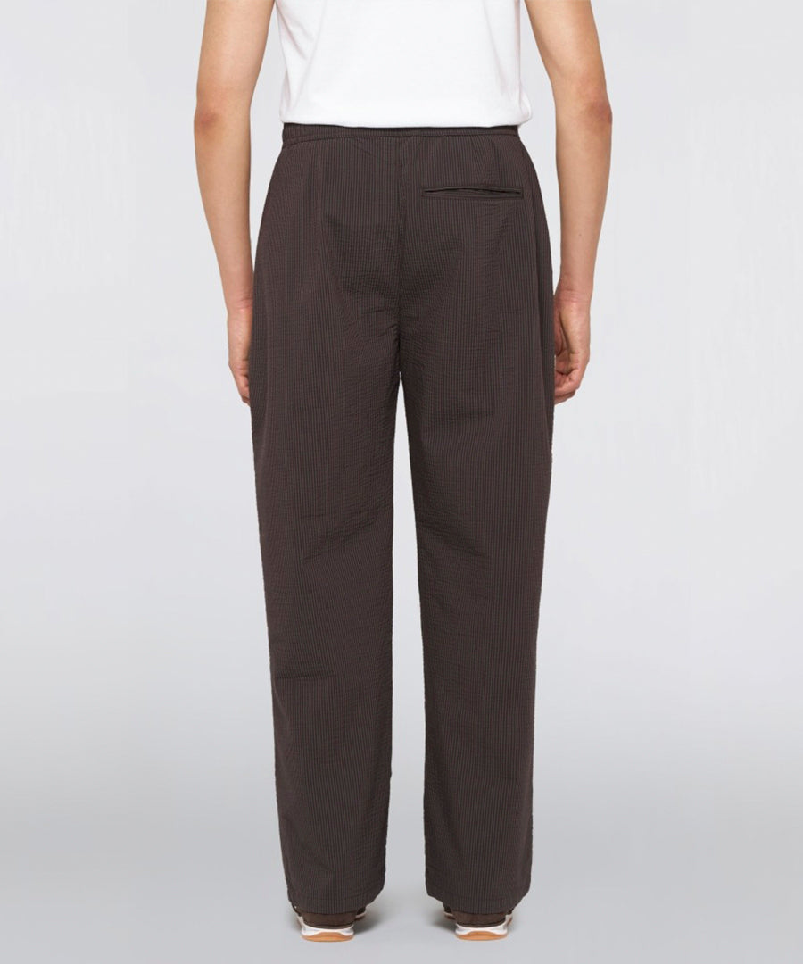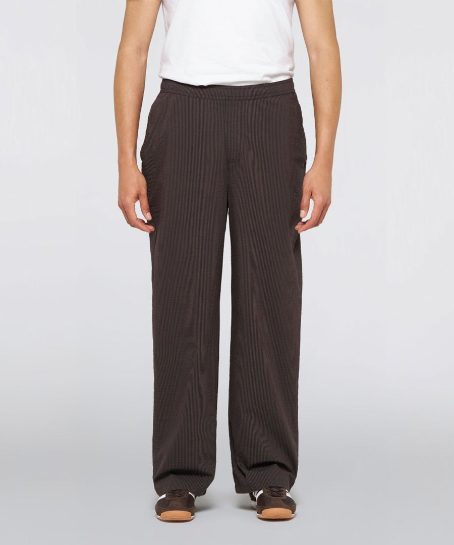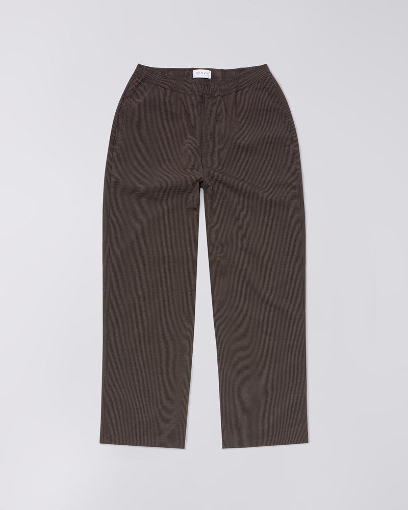 Edison Pant i Coffee Bean / Black fra Edwin kombinerer funktionel design med contemporary streetwear-æstetik. Syet i 140g/m² two-tone seersucker med en unik tekstureret overflade, der giver både visuelt og taktilt udtryk.