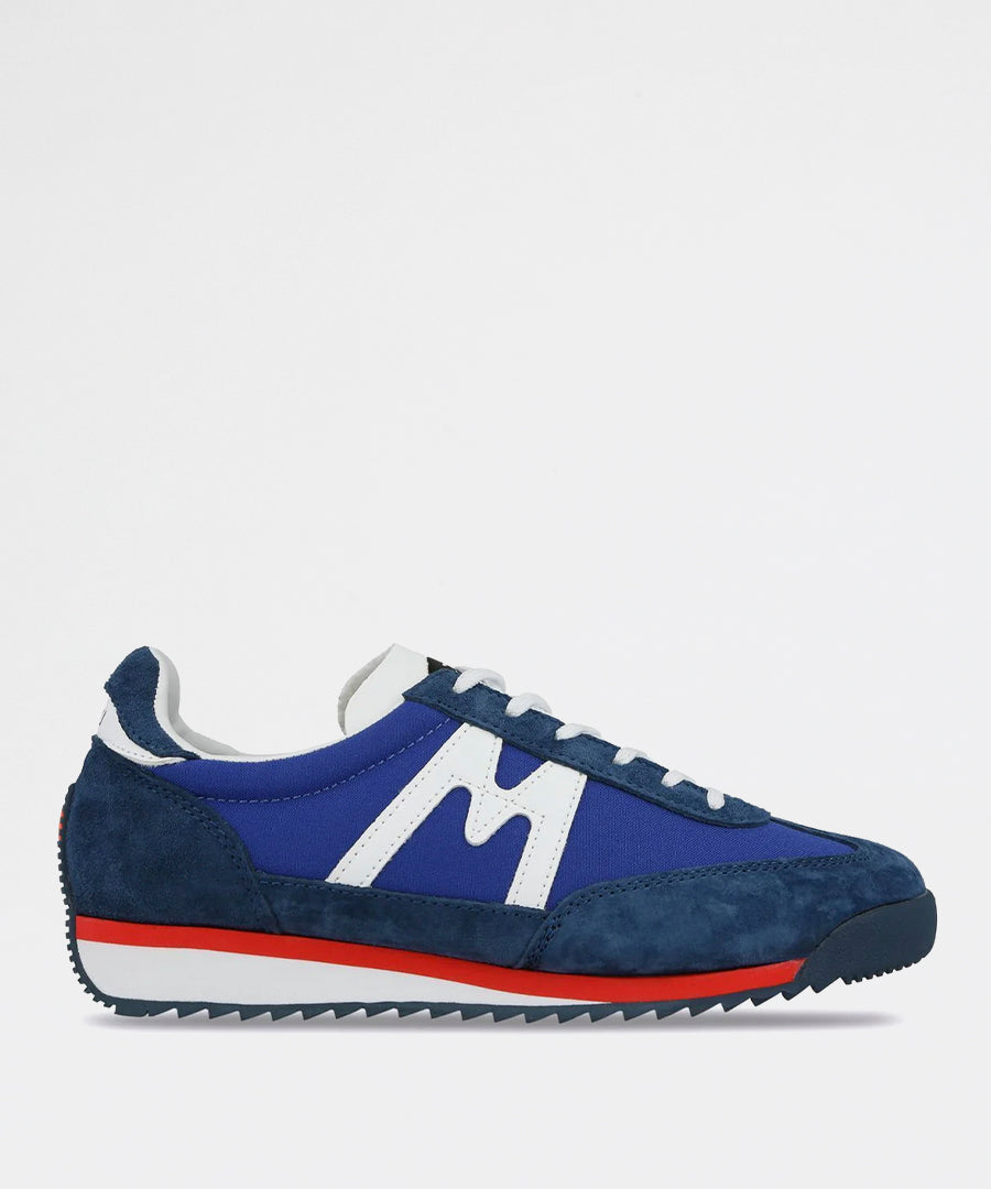 Mestari 76 Classic Blue White er en ikonisk sneaker fra Karhu, der bringer finsk løbehistorie fra 1976 til moderne streetwear. Den klassiske blå og hvide colorway giver en frisk, tidløs æstetik, der passer perfekt til både casual og sporty looks.