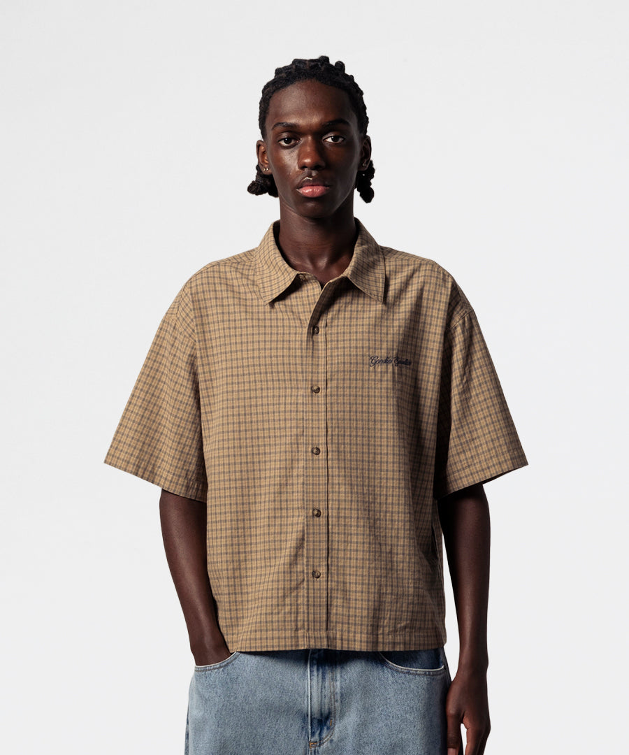 Uanset om du styler den med jeans, cargo-bukser eller chinos, giver Moss Boxy Shirt Caramel dig et afslappet og stilfuldt look med en moderne edge.