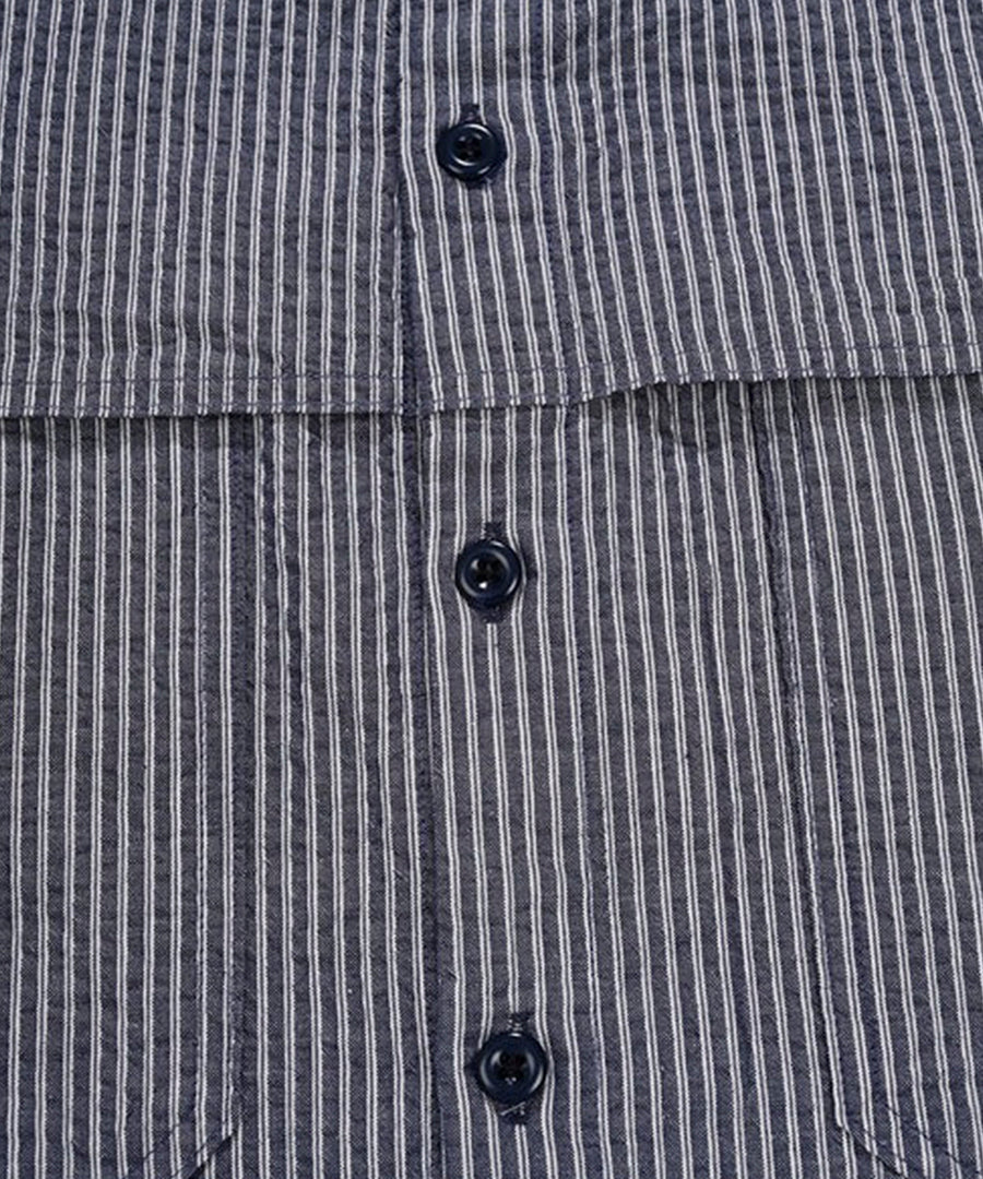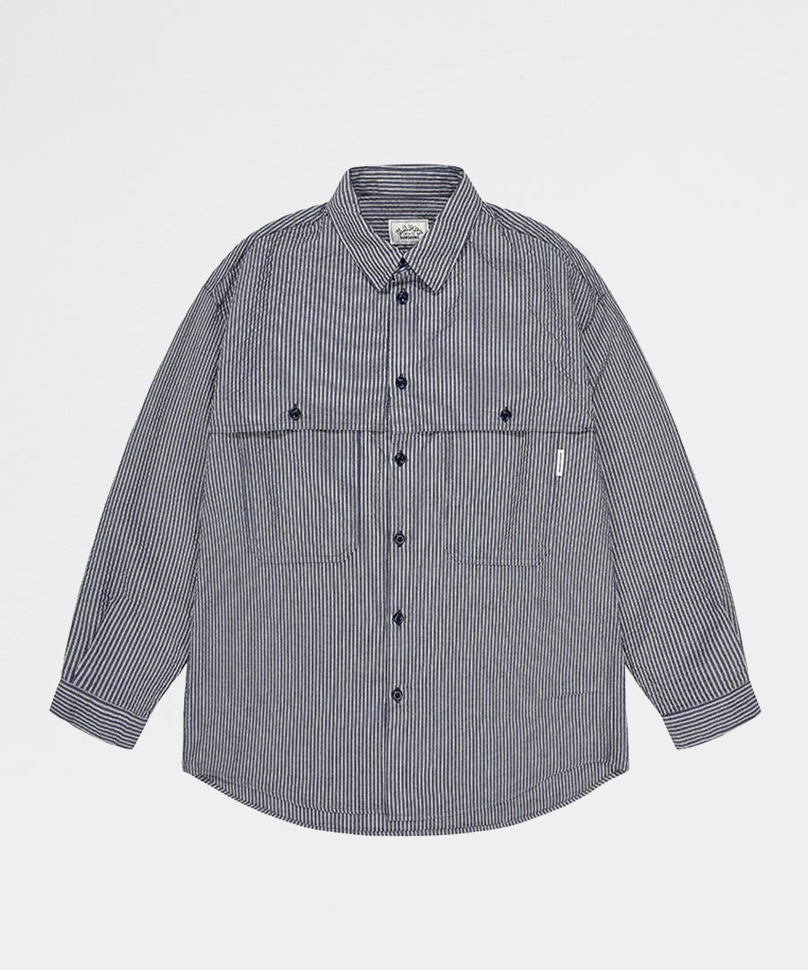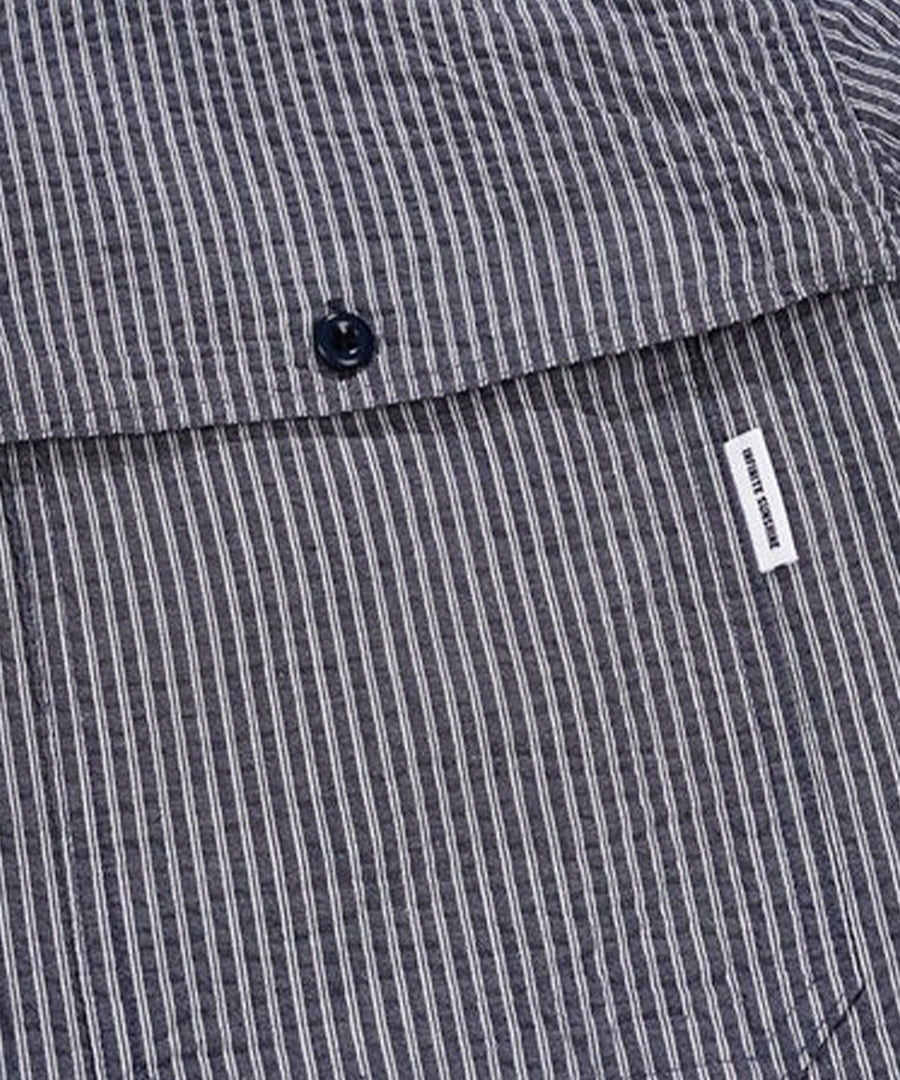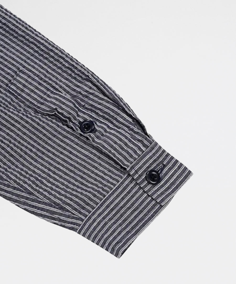 Stripe Pocket Work Shirt i navy er en klassisk arbejdsskjorte med et premium twist. Fremstillet i en holdbar, åndbar væv med et subtilt stribemønster, der giver et poleret look uden at gå på kompromis med komforten.