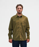 En essentiel skjorte til enhver mands garderobe. Den olive farve og relaxed fit gør den til det perfekte valg til afslappede weekender eller casual arbejdsdage.