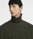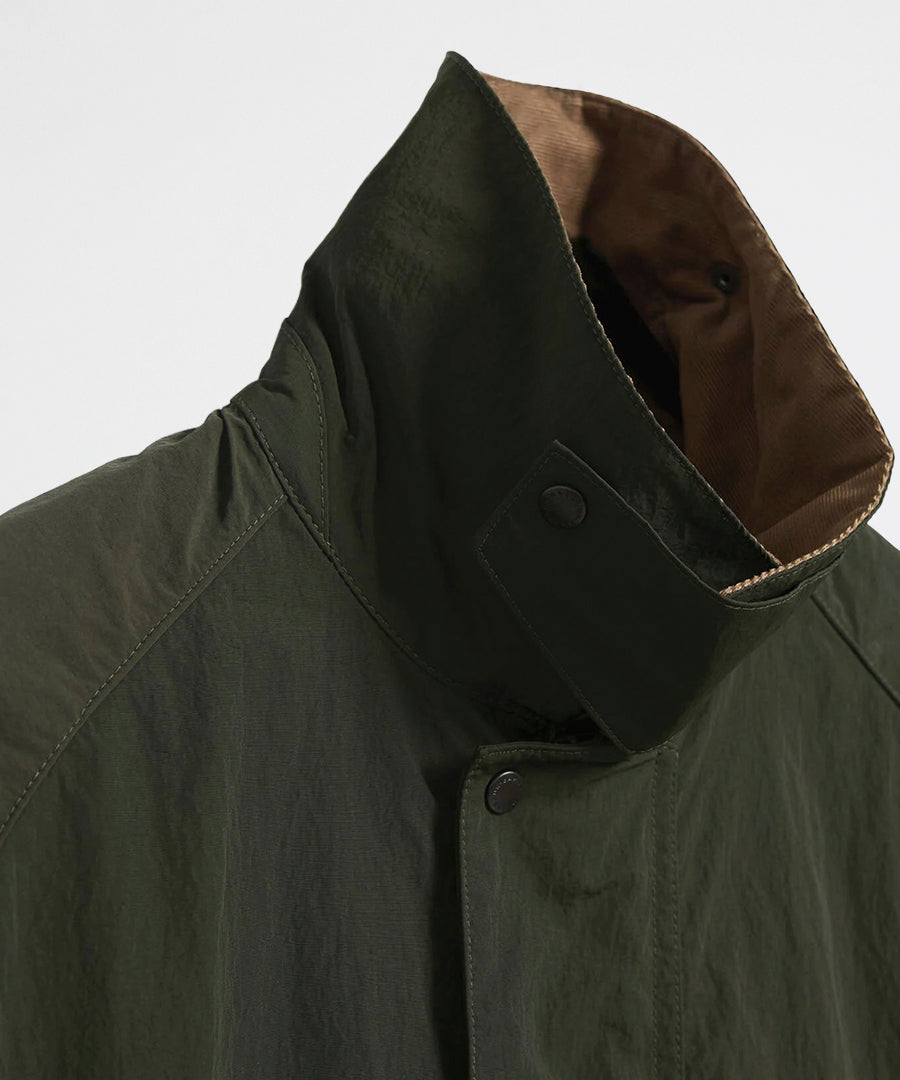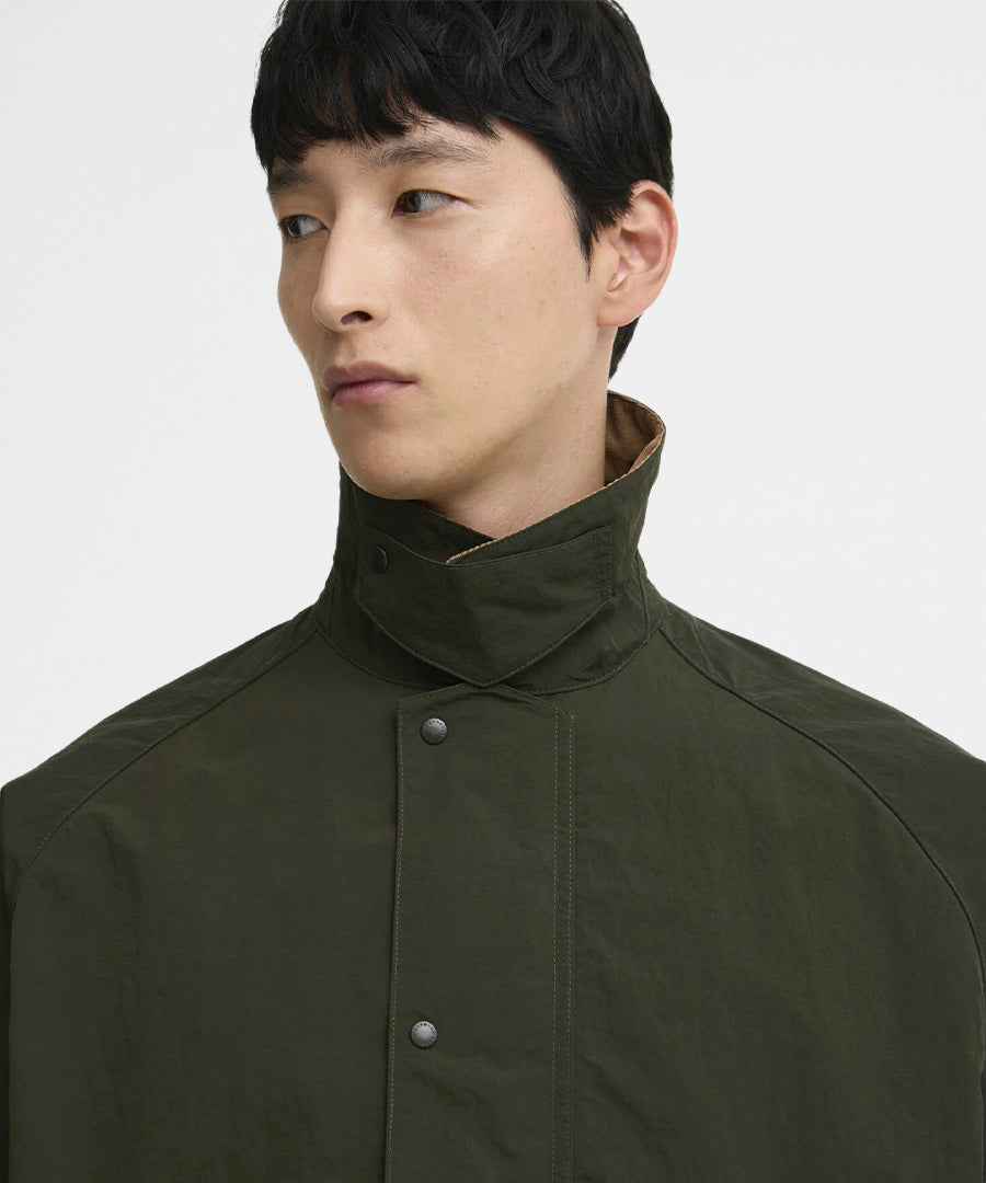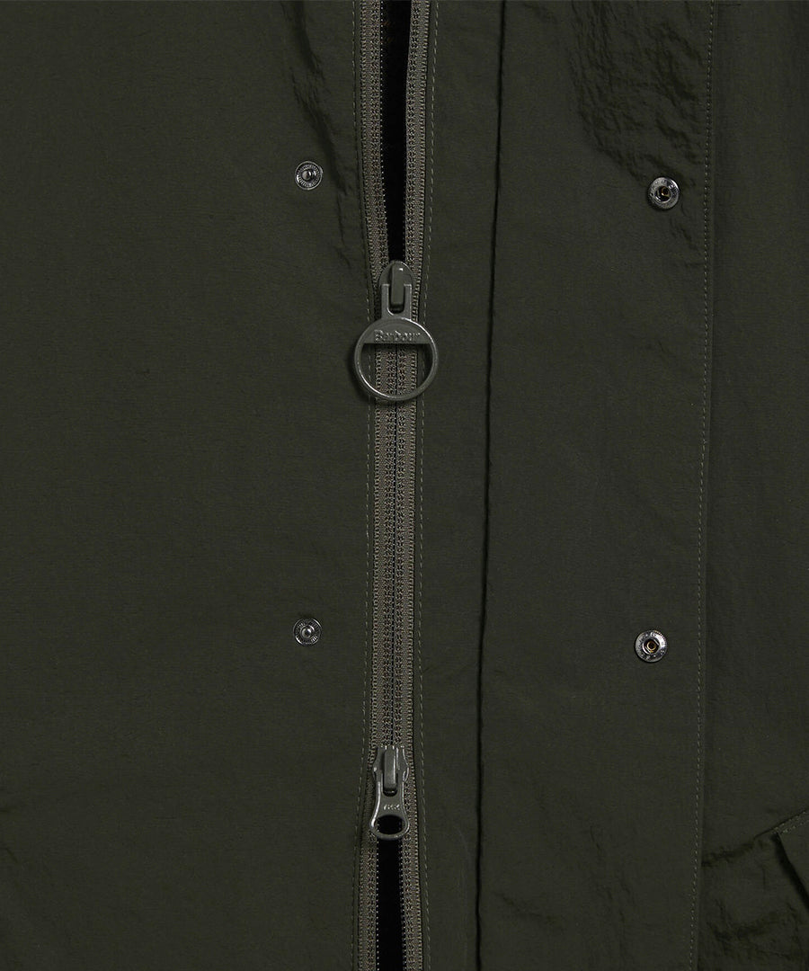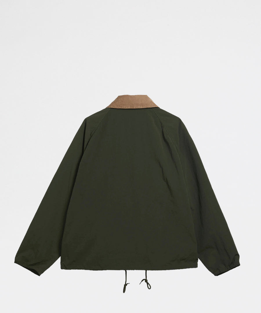 Barbour Transport Nylon Casual Jacket i Sage kombinerer funktionel design med tidløs stil. Baby cord-krave, zip-front med knap-placket og reverse welt-lommer skaber en raffineret profil. Elastiske manchetter og snøretalje i bunden sikrer optimal pasform, mens inner tartan-detaljer og tonal broderi på venstre lomme tilføjer autentisk Barbour-karakter. Oversized fit til den moderne garderobe.