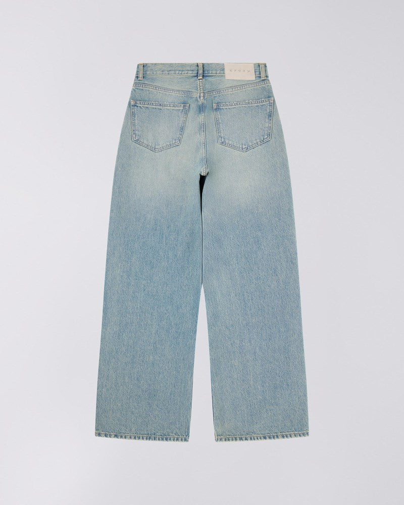Edwin W' Olivia Pant i Blue med Crystal Wash er en moderne fortolkning af klassisk denim til kvinder. Disse oversized bukser er fremstillet af 14.6oz Arctic Blue Denim - et robust og autentisk denimstof med en smuk, lys blå farvetone, der kombinerer holdbarhed med en behagelig fornemmelse.