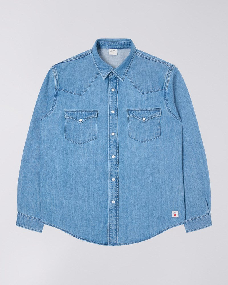 Edwin Western Shirt - Blå Denim Skjorte - Light Used Wash
