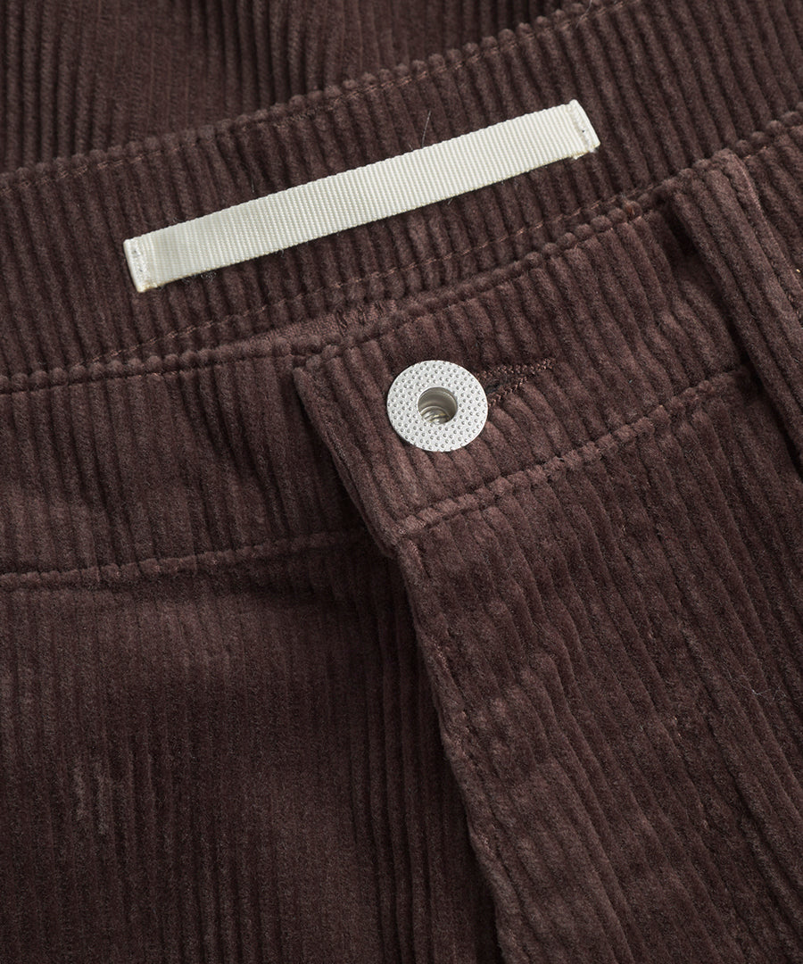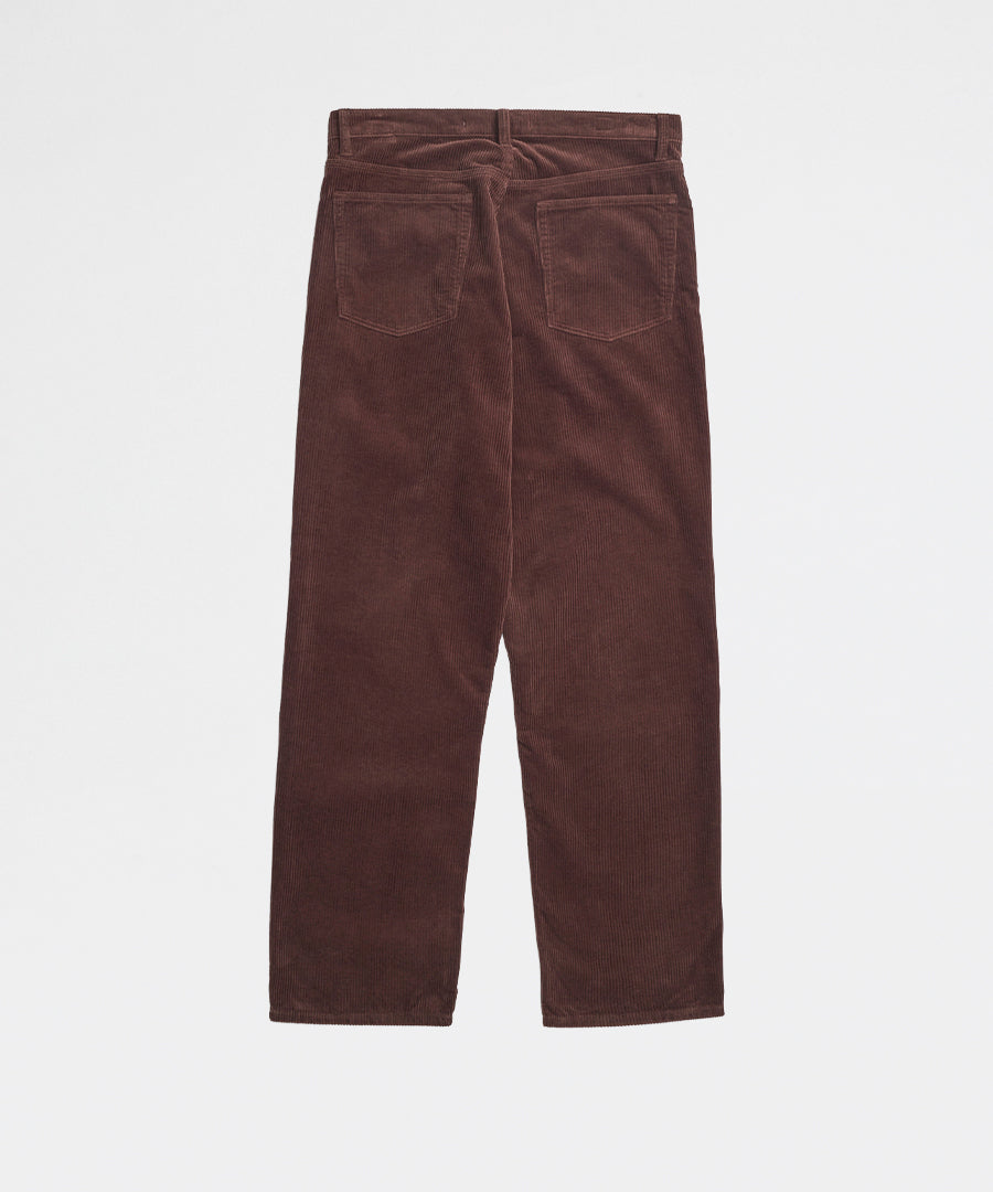 En afslappet pasform 5-lommers bukser i bred fløjl, konstrueret i italiensk wide wale corduroy og garment dyed for en dyb, rig farve. Klassisk 5-lommers design med lynlås, knaplukning og mærket fane bagpå.