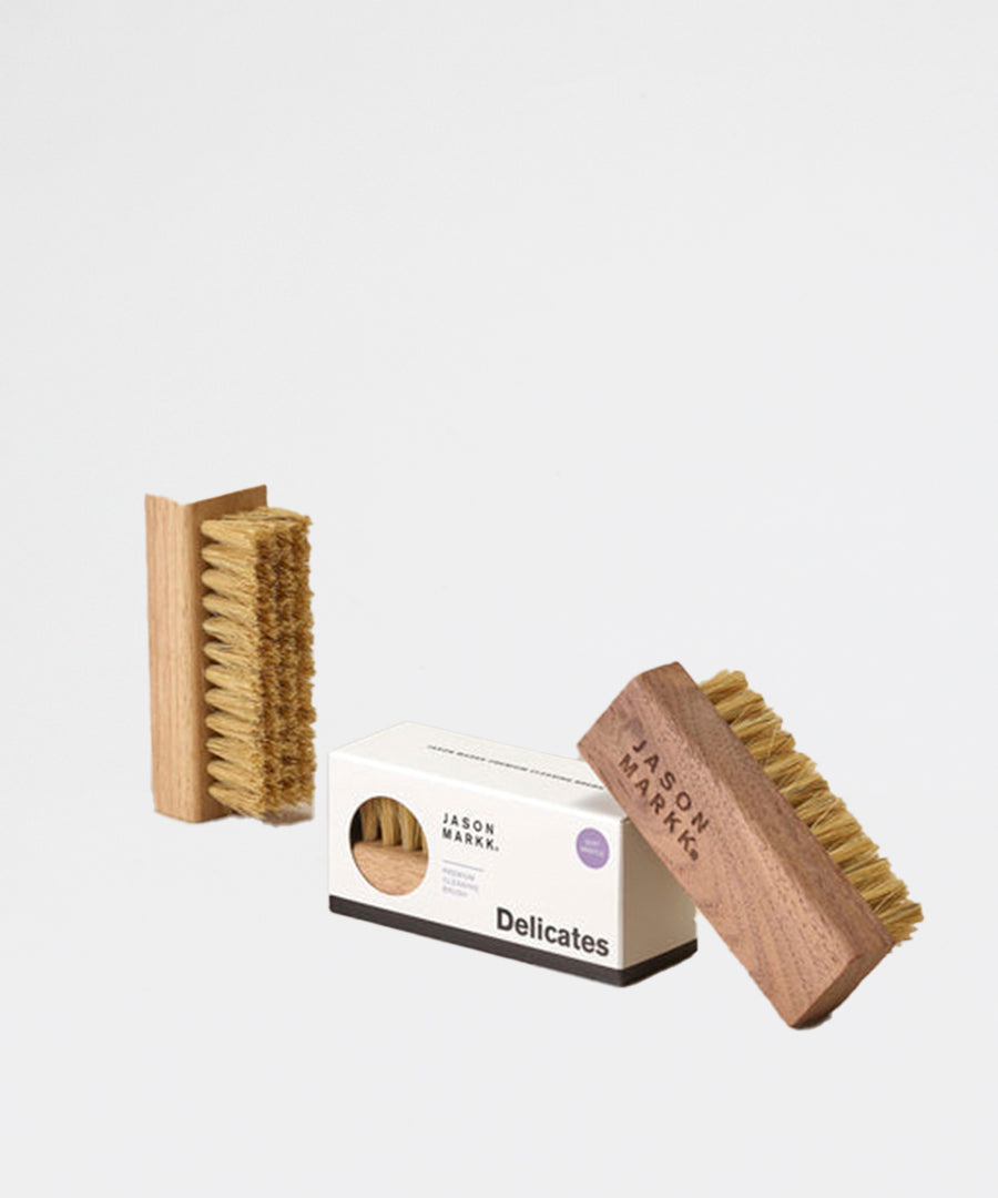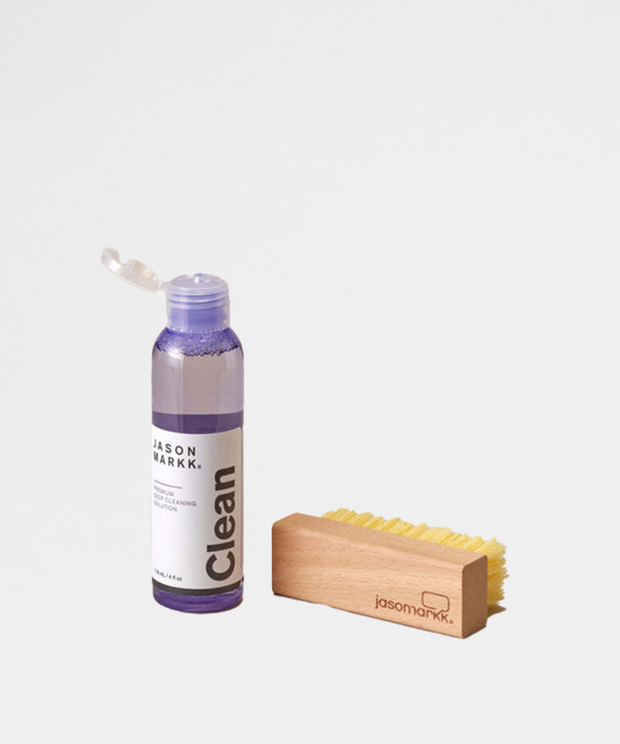 -Hvordan bliver mine sneakers rene igen? Svaret er simpelt: Et rense kit fra Jason Markk. Der findes et hav af forskellige brands, der producerer rense produkter til sneakers. Når det kommer til hvad der er bedst, vil vi klart anbefale Jason Markk, som i øvrigt også er verdens mest anvendte produkt, når det kommer til vedligholdelse af sneakers. Jason Markk her en række produkter i sortimentet, som alle har hver deres funktion. Er dine sneakers blevet beskidte, så brug ”Premium Shoe Cleaning Kit”, som består af en allround børste samt sæbe. Alt efter materiale kan du købe børster i forskellige hårdheder. Hvis du skal rengøre ruskindsko, anbefaler vi ”Suede Cleaning Kit”, som består af en special udhviklet gummi blok samt en ruskindsbørste. Gummiet bruges til at fjerne mærker, hvor den tilhørende ruskinds børste bagefter sørger for at få hårene i ruskindet til at rejse sig igen.