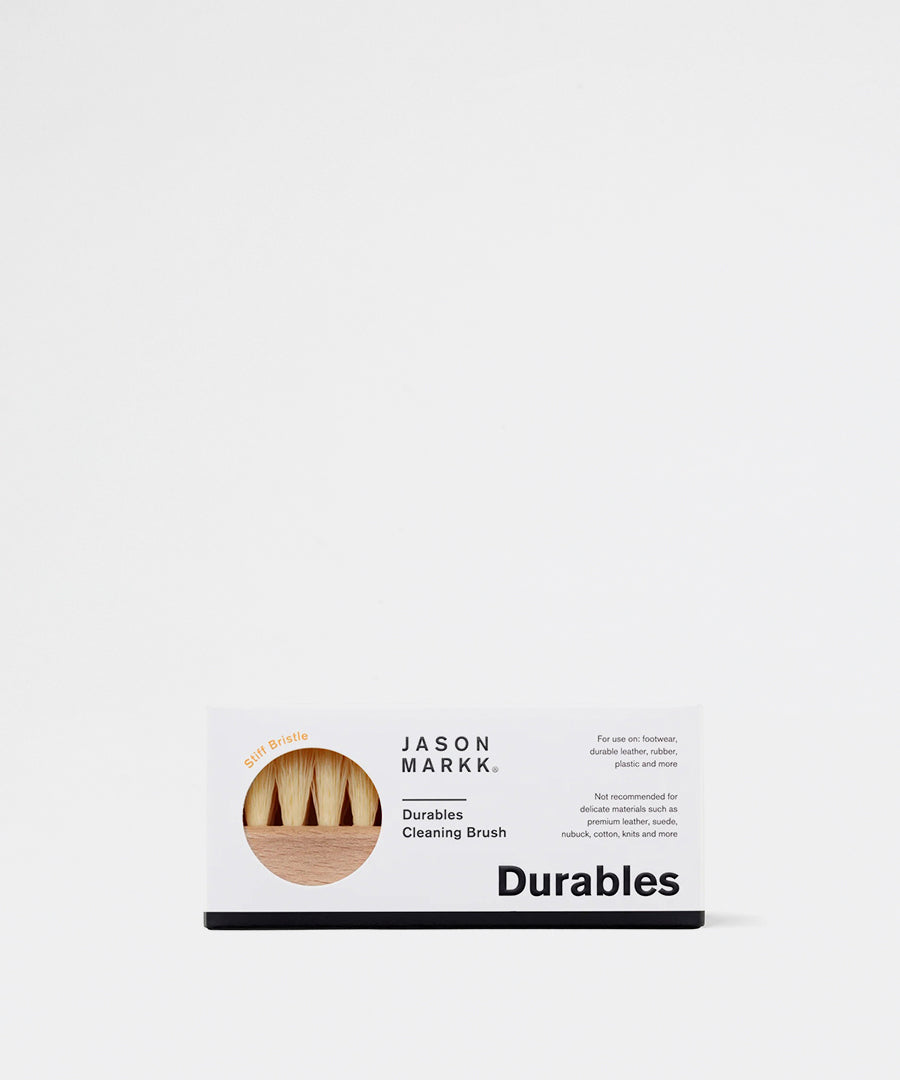 Jason Markk Durables Cleaning Brush er specielt designet til effektiv rengøring af robuste materialer og hårdere overflader.