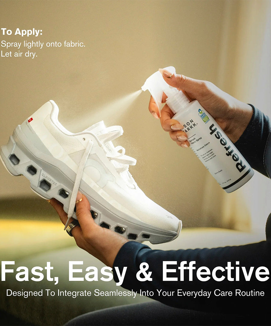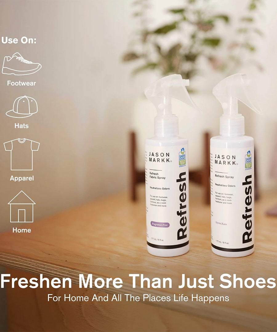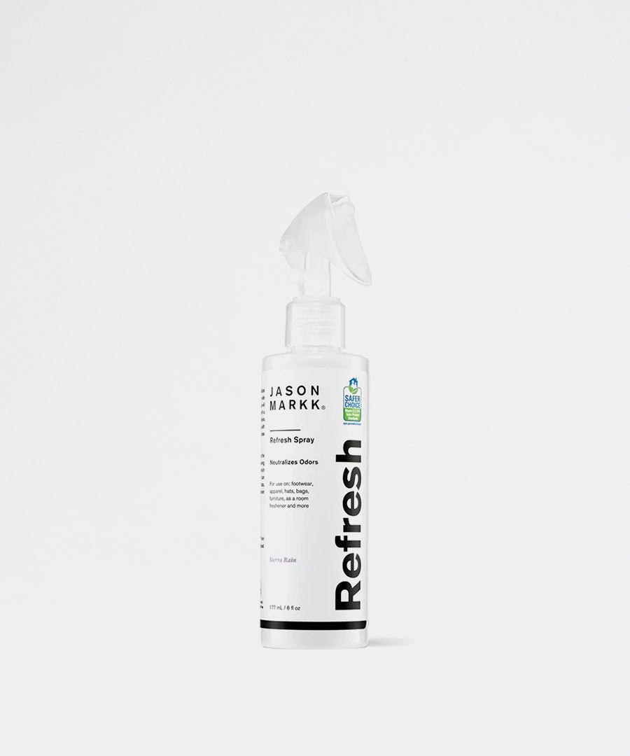 Jason Markk Refresh Spray er den perfekte løsning til at holde dine sko friske mellem rengøringer. Denne innovative spray eliminerer effektivt lugt og efterlader en behagelig, frisk duft.