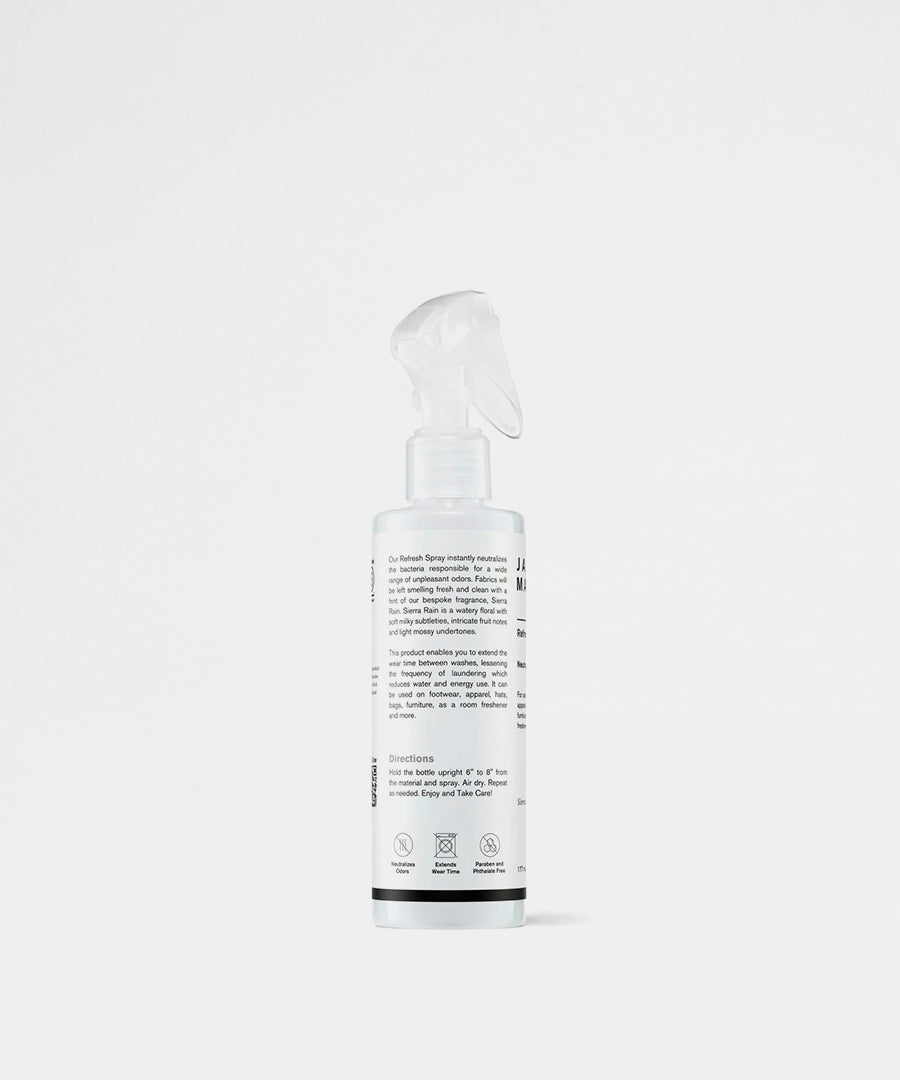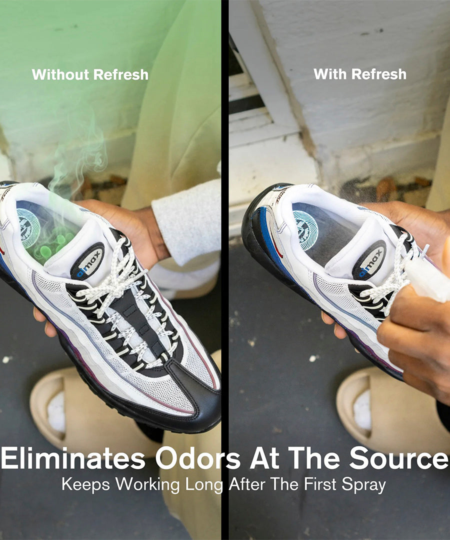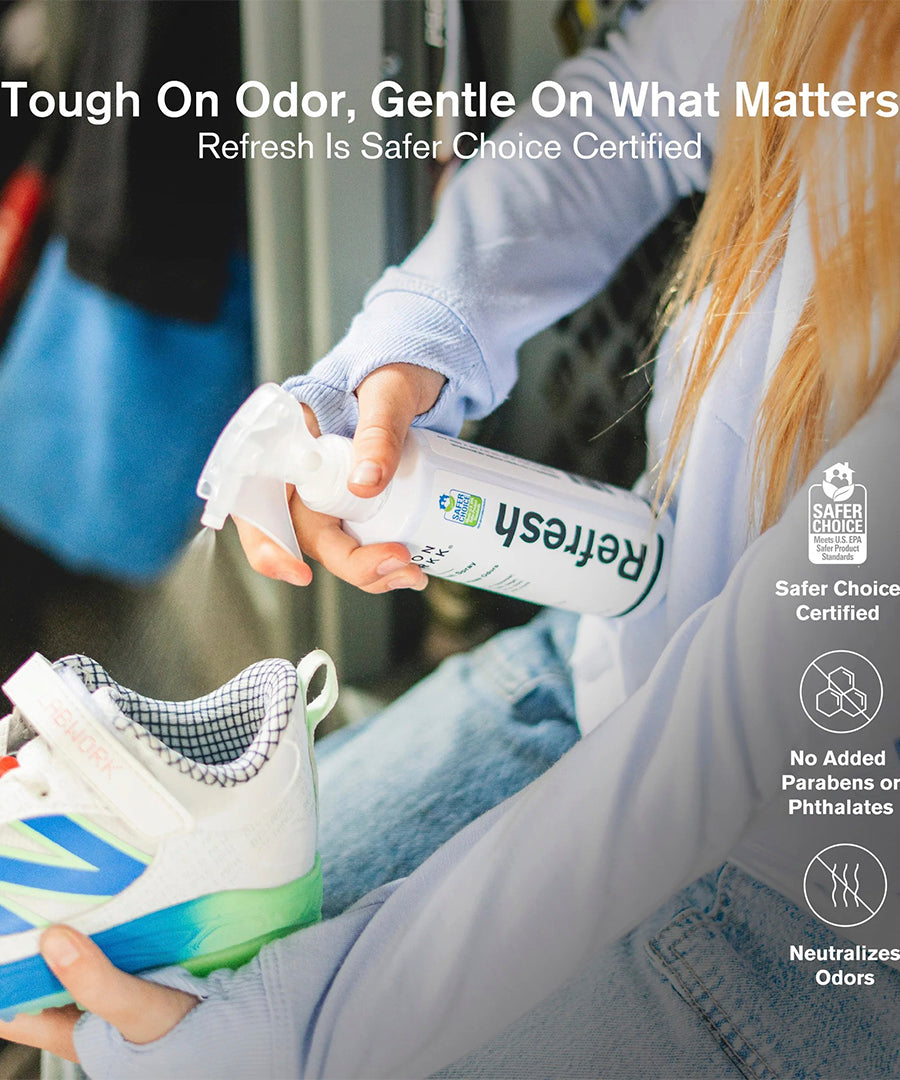 Refresh Spray er specielt udviklet til at neutralisere ubehagelige lugte fra sved og daglig brug. Den lette formula trænger dybt ind i materialet uden at efterlade pletter eller fugt, og den kan bruges på alle typer sko - fra sneakers og løbesko til lædersko og støvler.