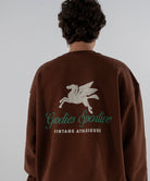 550 Grms Organic Cotton. Relaxed Fit Chocolate Crewneck. Front And Back Logo, Rounded Neck
