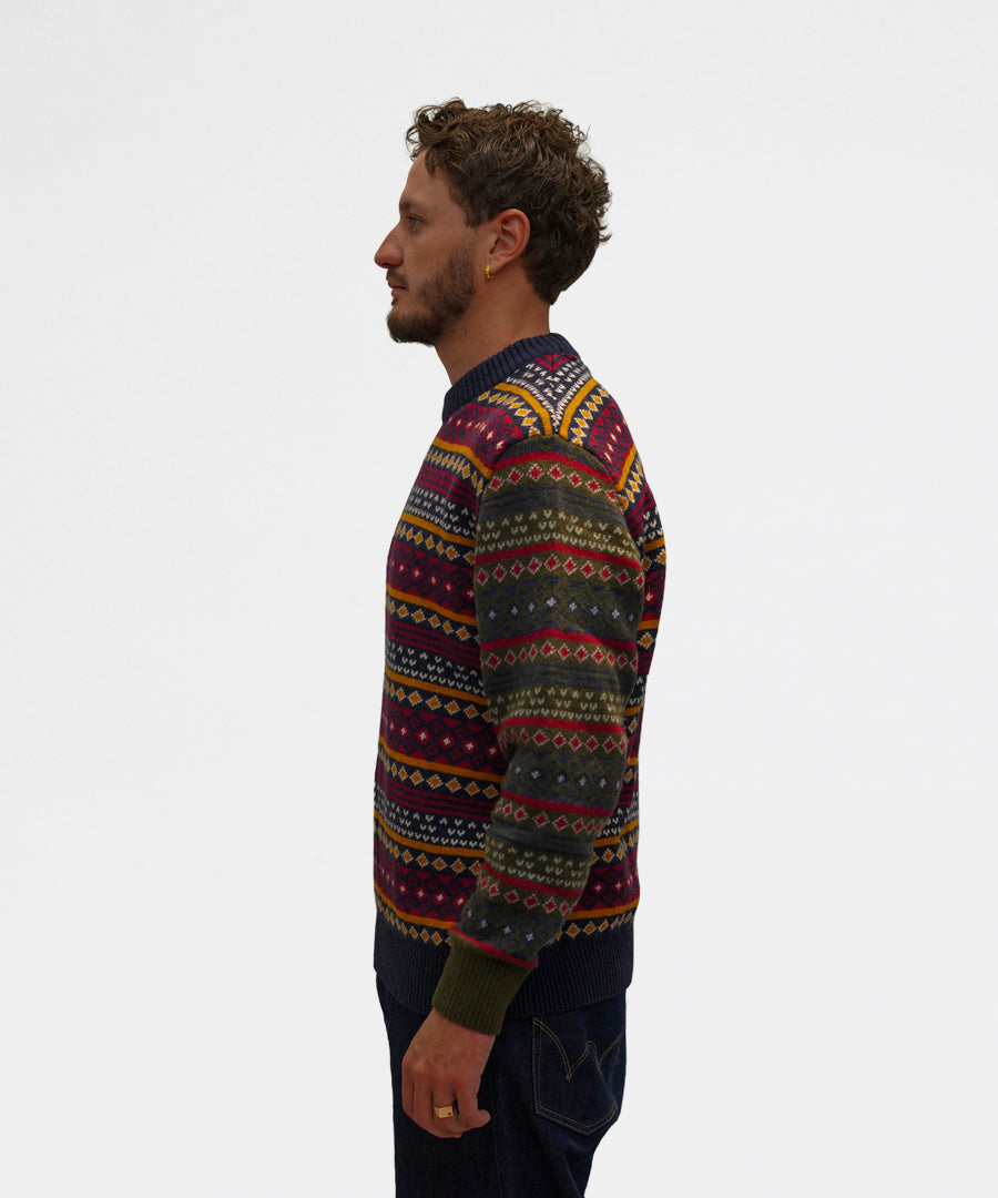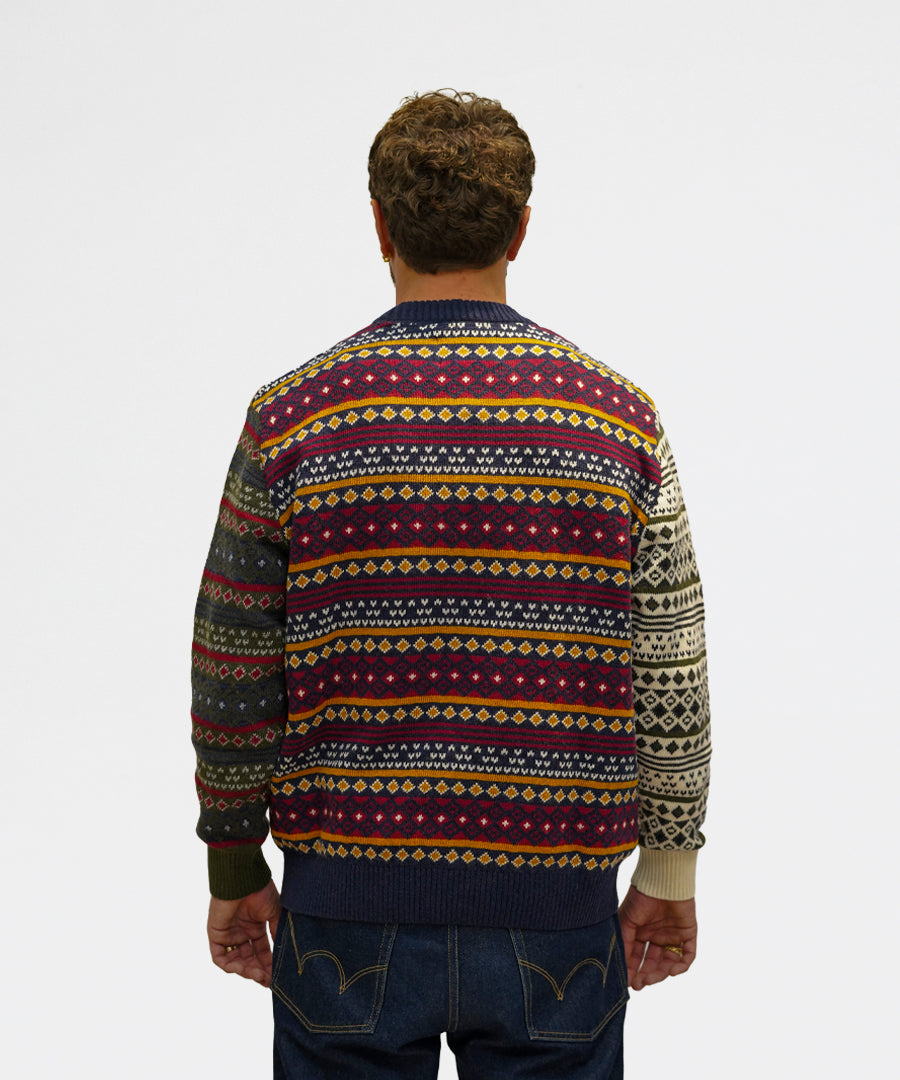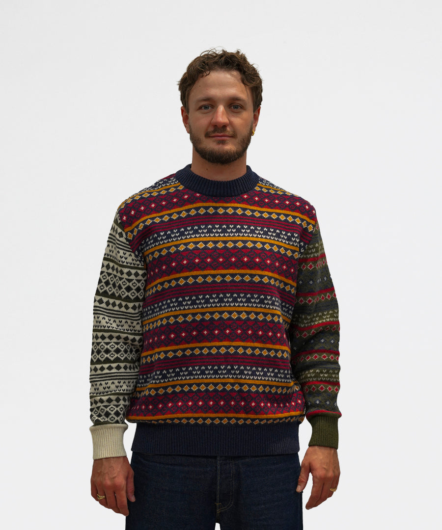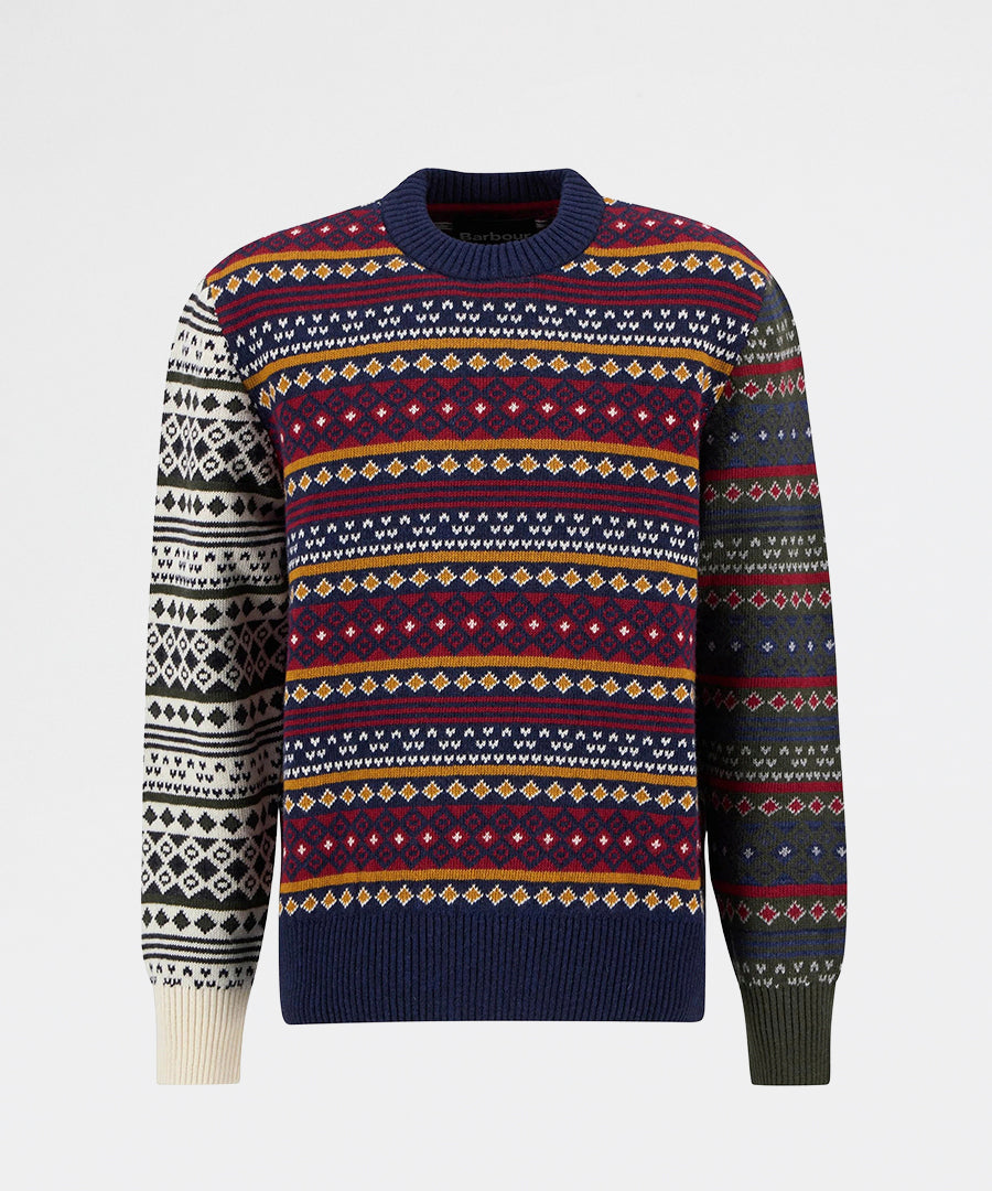 Barbour Patchwork Fair Isle Crew Neck Sweater Navy Mix