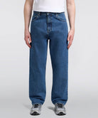 Edwin Matrix Pant i Blue med Mid Marble Wash er en moderne denim-bukser, der kombinerer klassisk silhuet med karakterfuld æstetik. Fremstillet af 14.6oz Arctic Blue Denim i 100% bomuld, leverer disse bukser både substans og komfort i en robust kvalitet.