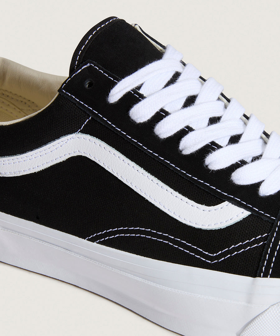 Vans Old Skool Lx i klassisk Black/White colorway er en ikonisk sneaker, der kombinerer tidløst design med premium kvalitet. Modellen er en del af Vans' Lx-serie, hvor fokus er på forbedrede materialer og finish.