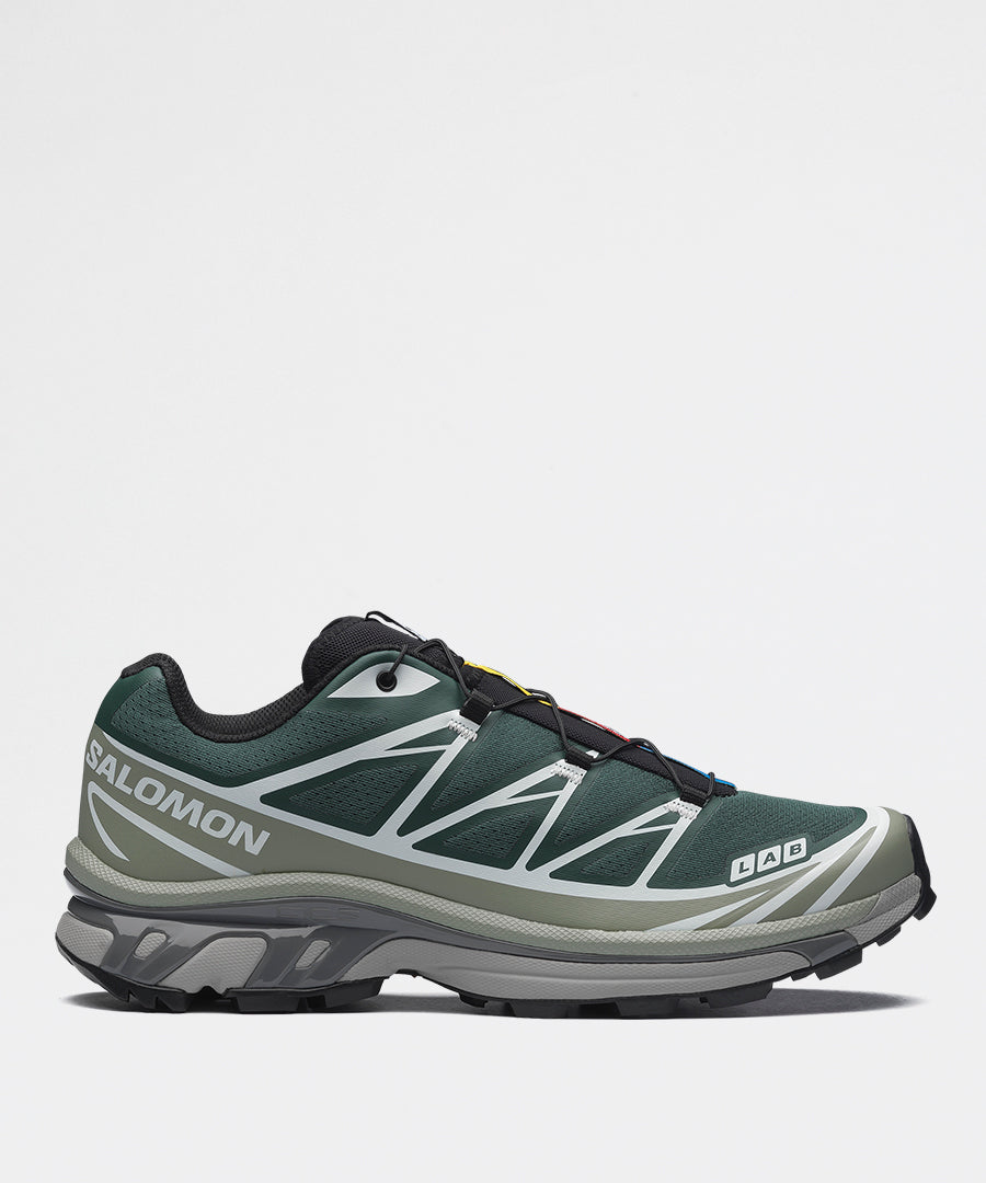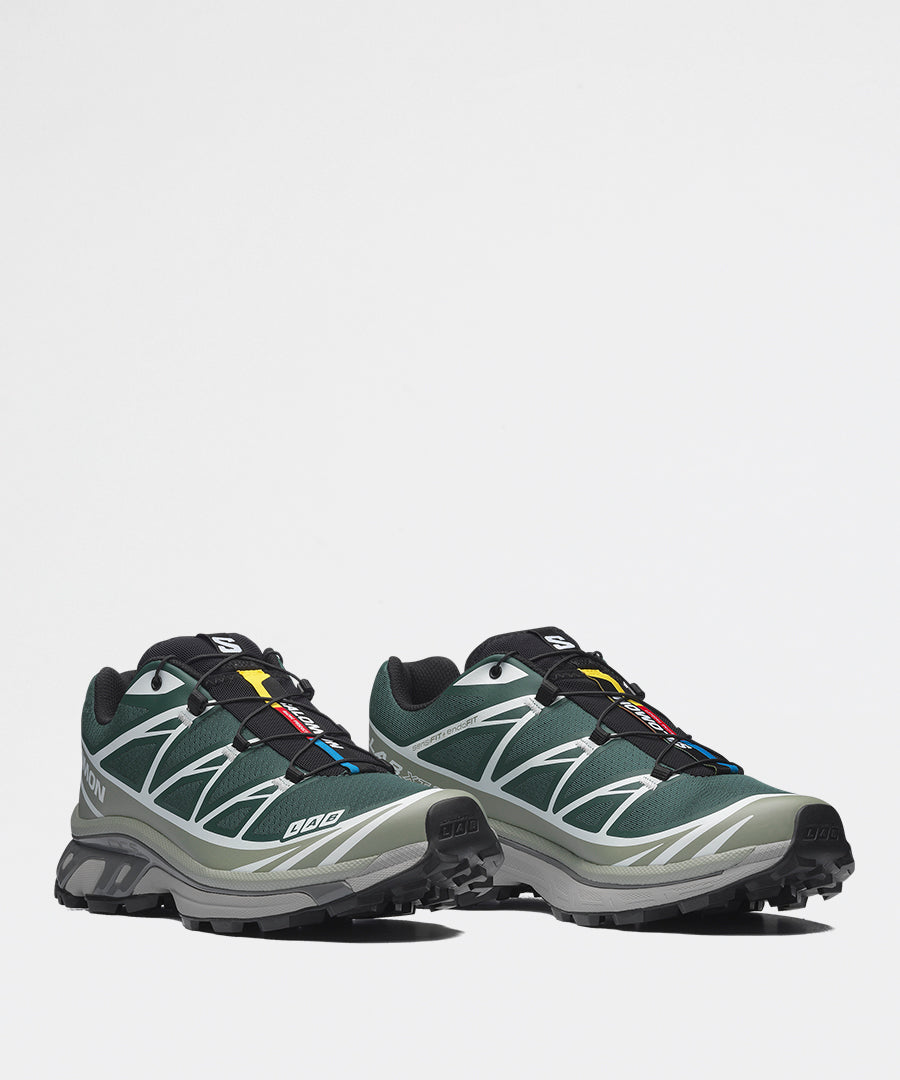 En legendarisk ultra-distance trail-runner transformeret til streetwear-ikon. Salomon XT-6 kombinerer proven outdoor-performance med en frisk Bistro Green/Green Milieu/Black colorway, der bringer trail-heritage ind i contemporary kontekst.