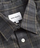 Ole Oversized Wool Check Shirt fra Norse Projects er en stilfuld og komfortabel skjorte i blødt uld, perfekt til den køligere årstid. Den oversized pasform giver et afslappet, moderne look, mens det klassiske ternmønster i charcoal grey tilføjer en tidløs elegance.