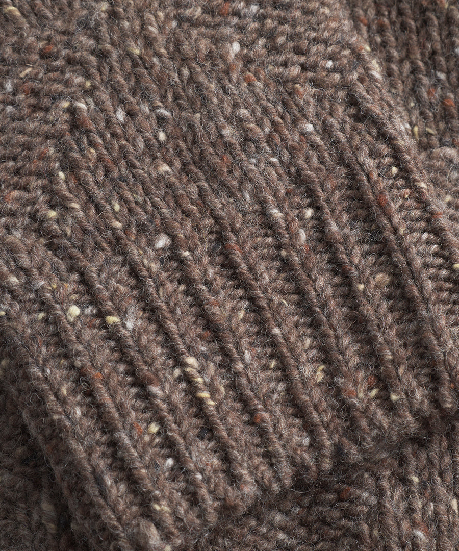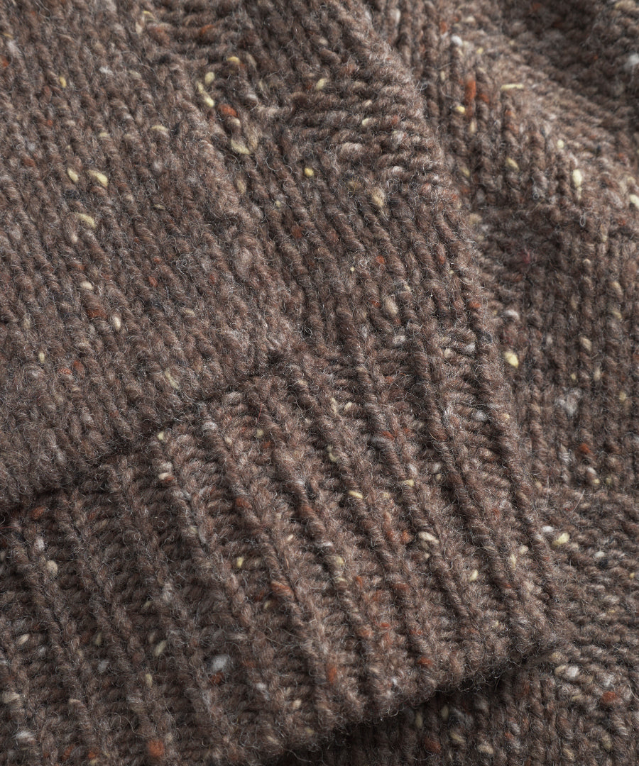 - Premium Donegal-garn: Traditionelt irsk garn med små farvespætter, der giver jakken et autentisk og håndværksmæssigt udtryk