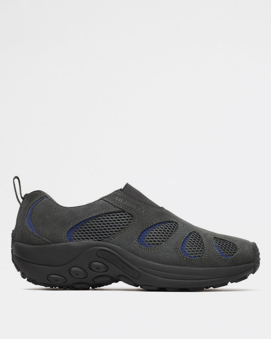 Fødderne holdes afslappede og stilrene med Merrell 1TRL Jungle Moc i Black Graphite – den perfekte blanding af komfort og cool.