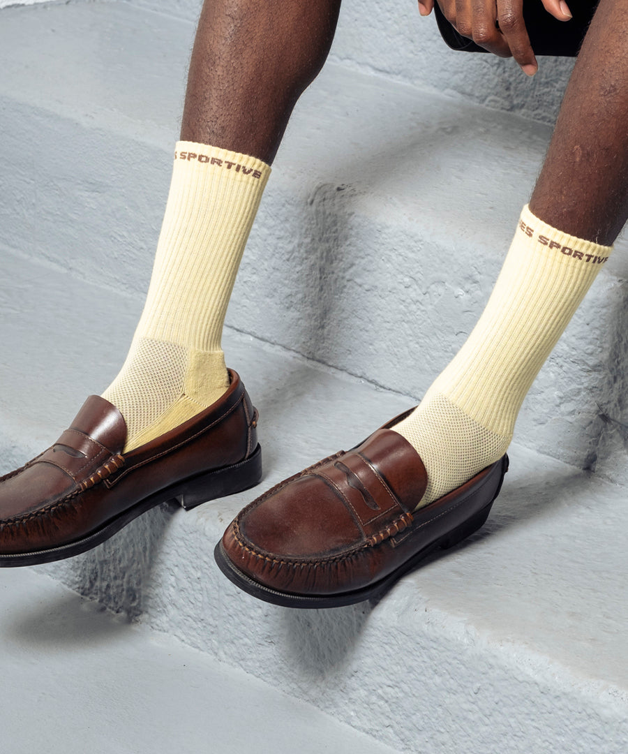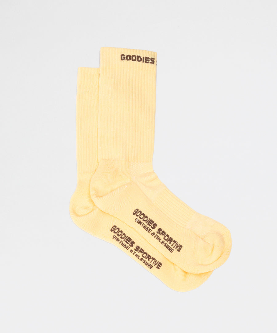 Klassiske sokker i dusty yellow fra Goodies Sportive. En essentiel accessory til din streetwear-garderobe med en afdæmpet gul nuance, der tilføjer et subtilt farveaccent til dit outfit.