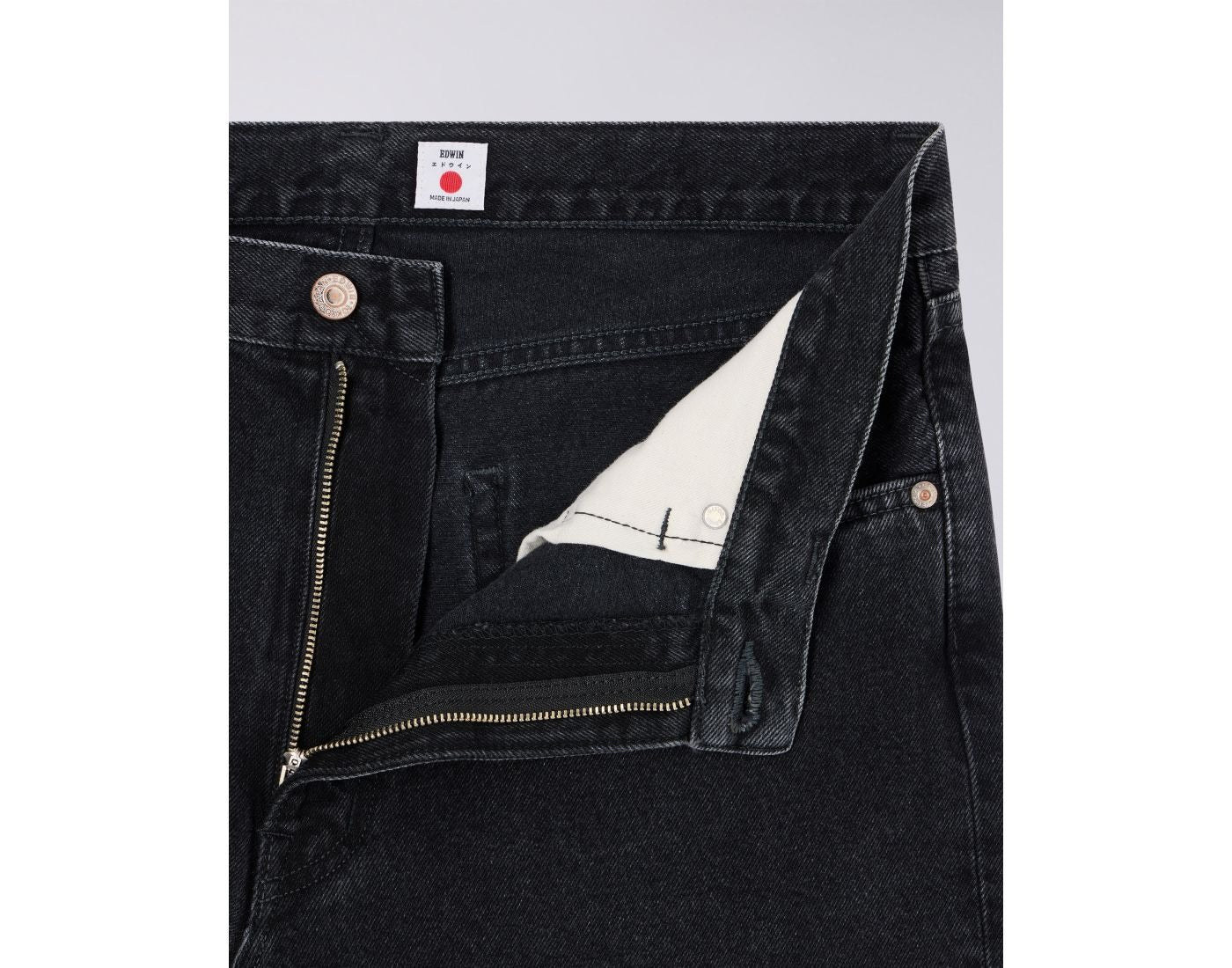 Edwin Loose Jeans i premium 13oz Kaihara Right Hand Black Denim med dark used finish. Fremstillet i 100% bomuld for maksimal komfort og holdbarhed.