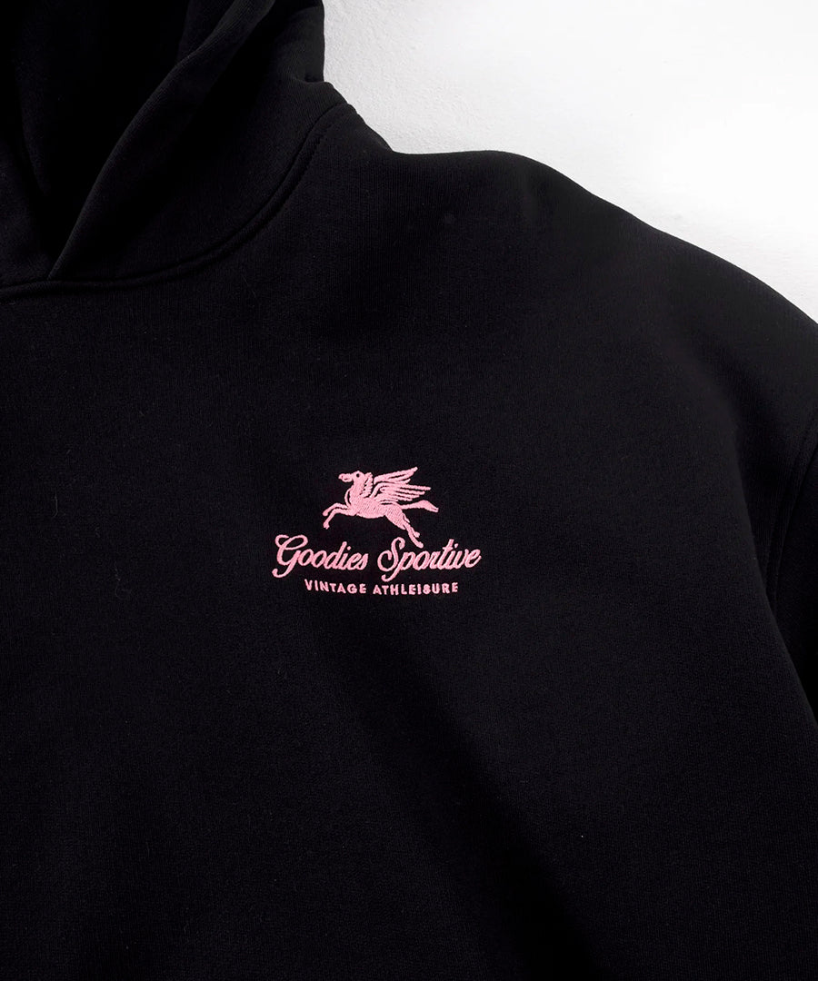 Denne premium hættetrøje, fra Goodies Sportive FW25 kollektion, er fremstillet af 550g tung bomuld, som sikrer både varme og holdbarhed. Hættetrøjen har en klassisk hætte med snøre og en praktisk kænguru-lomme på fronten. Det pink kontrastbroderi på venstre bryst tilføjer et stilfuldt touch til det ellers minimalistiske design. Produktet er omhyggeligt fremstillet i Portugal af 100% bomuld og kombinerer komfort med høj kvalitet i et tidløst design.