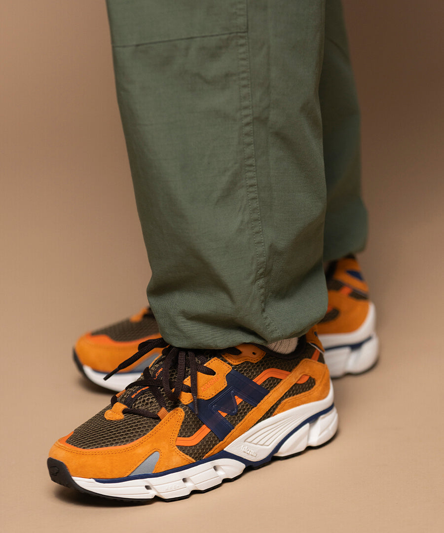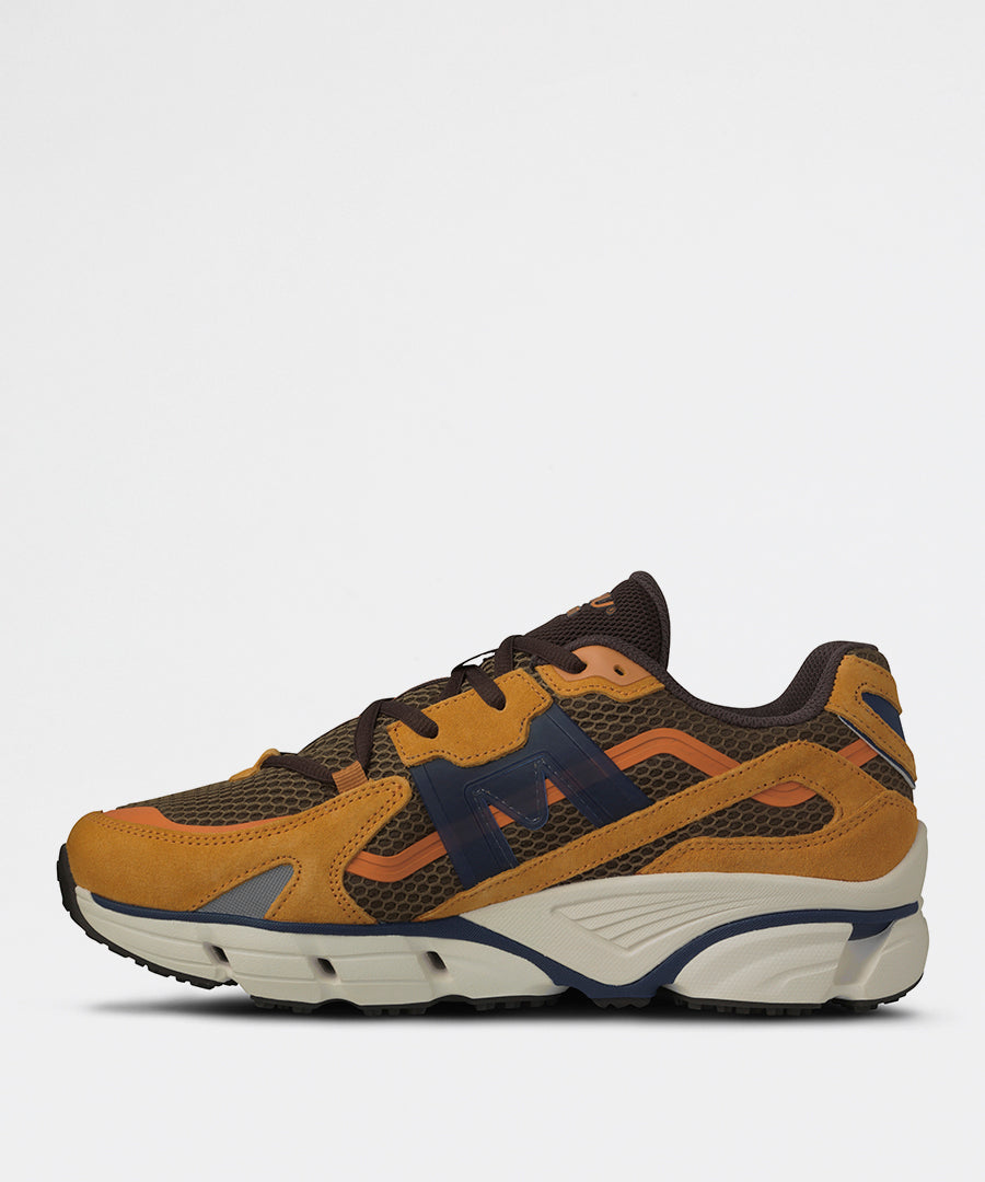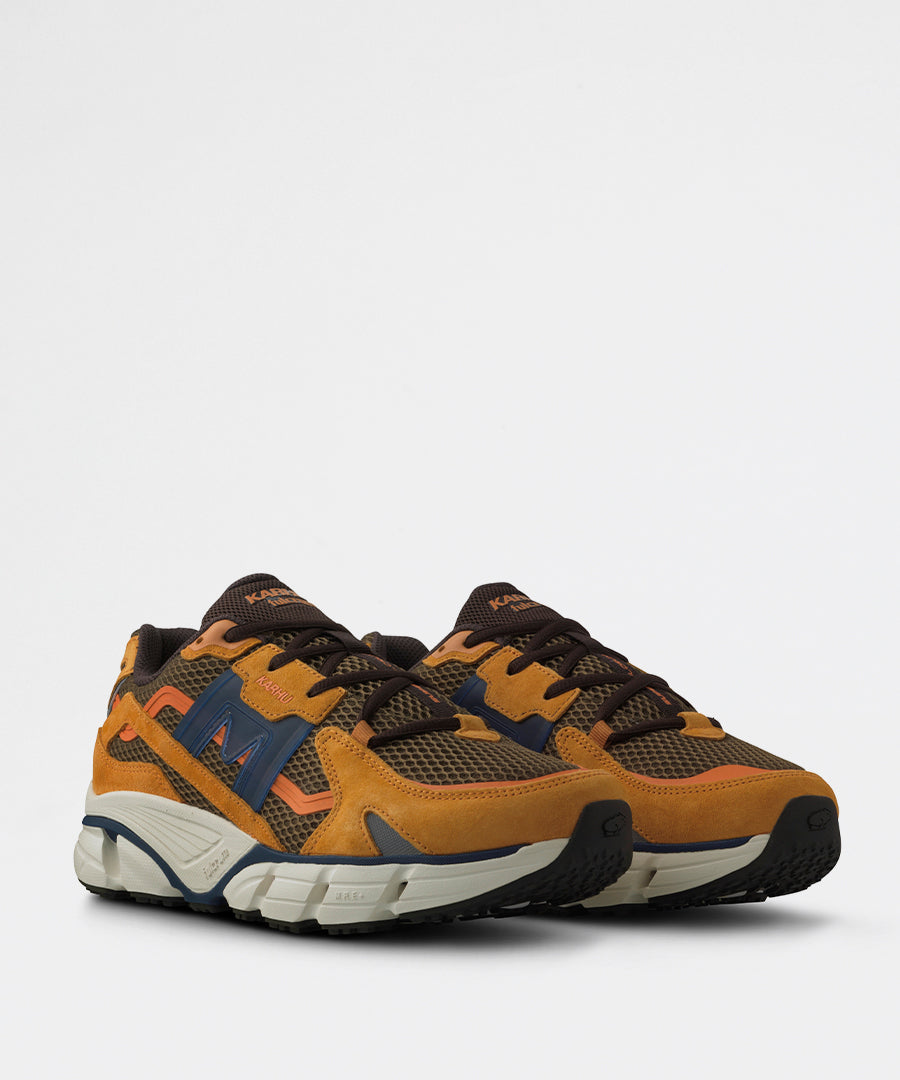 Super Fulcrum er en moderne fortolkning af Karhus klassiske løbesko-arv, designet til både performance og streetwear. Denne colorway kombinerer en varm Nugget-nuance med dybe Navy-toner og feminine Peony-detaljer for en sofistikeret og alsidig sneaker.