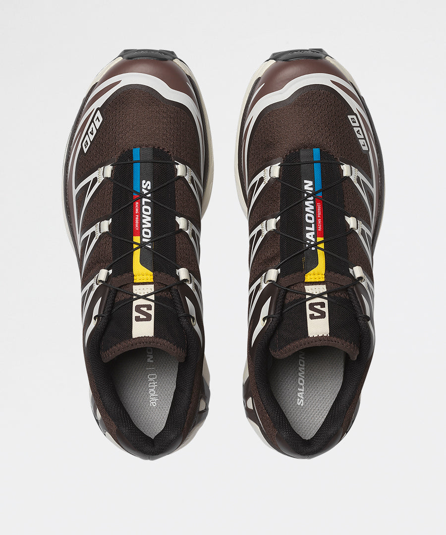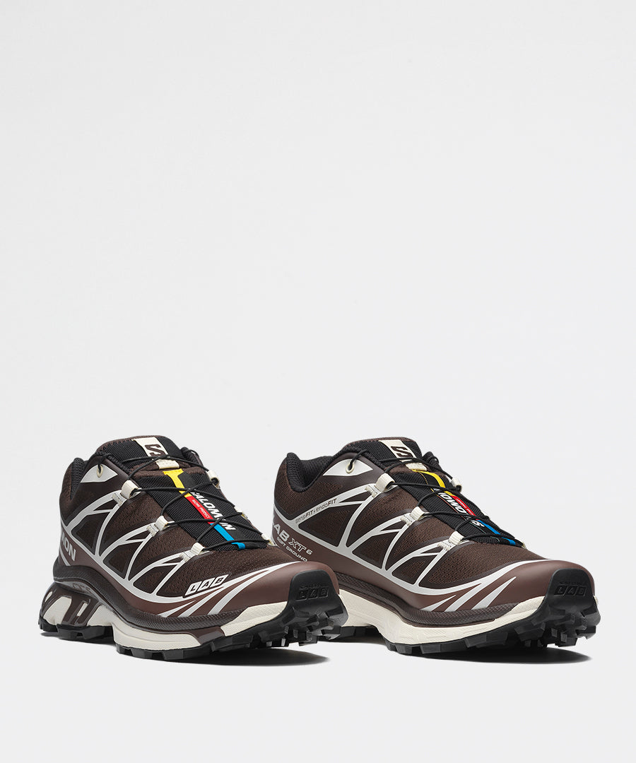 Xt-6 i den sofistikerede Black Coffee / French Roast / Vanila farvesammensætning er en moderne fortolkning af Salomons legendariske trail-løbesko fra 2013. Designet til dem, der værdsætter autentisk outdoor-performance kombineret med varm, jordnær æstetik.