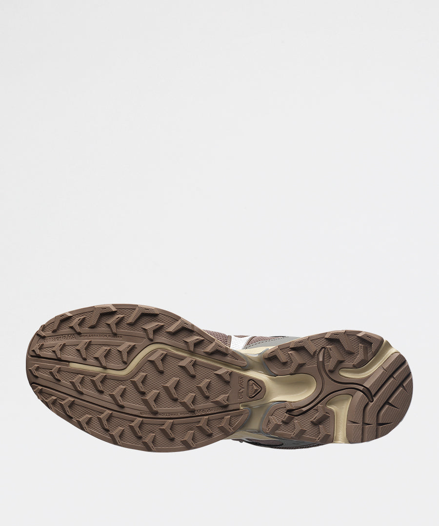 Xt-Whisper Falcon præsenterer en sofistikeret farveblanding, hvor Pewter-nuancer møder varme Falcon-toner og friske White Pepper-detaljer. Det tekniske udtryk balanceres af en moderne silhuet, der fungerer lige så godt på stien som i byen.