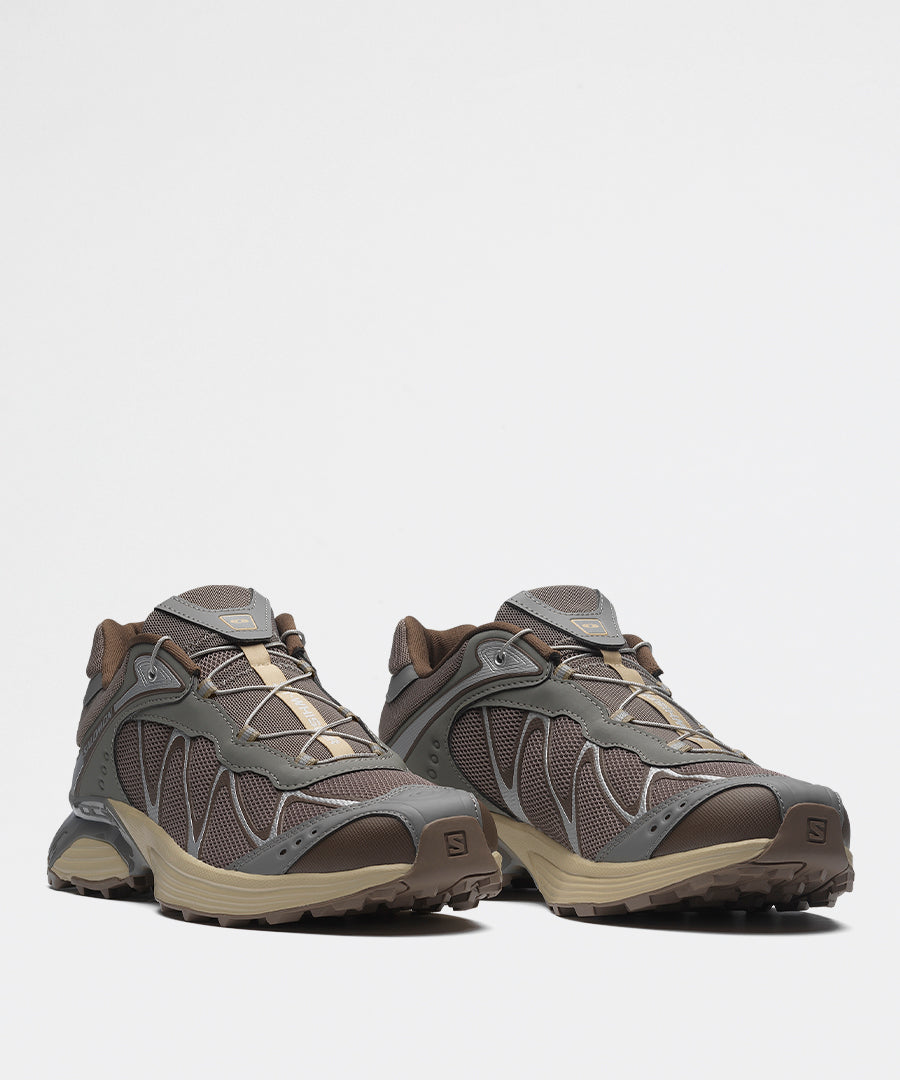 Salomon Xt-Whisper Falcon kombinerer trail-inspireret design med urban funktionalitet i en stilren farvesammensætning af Pewter, Falcon og White Pepper.
